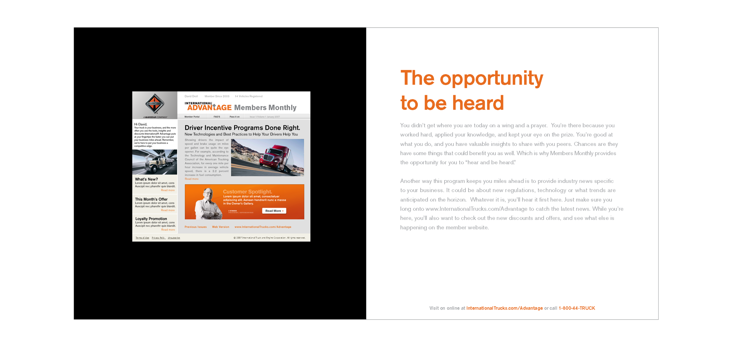 Since 2005, I’ve worked on a range of consumer and dealer initiatives, from launching the trucking industry’s most robust customer loyalty program, most aerodynamic long-haul truck, first hybrid truck, and first limited edition luxury 4x4 competing against Hummer in the consumer space. I’ve also worked on the enterprise website, truck microsites, experiential and event marketing as well as ongoing campaigns for parts and services.